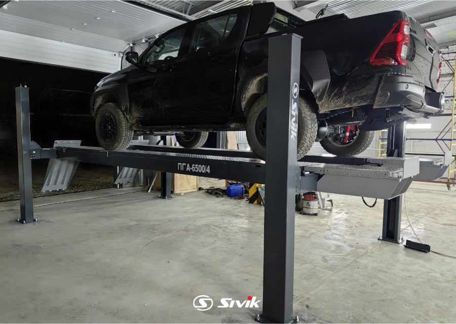 • Удлиненный четырехстоечный подъемник общей массой до 6,5 тонн