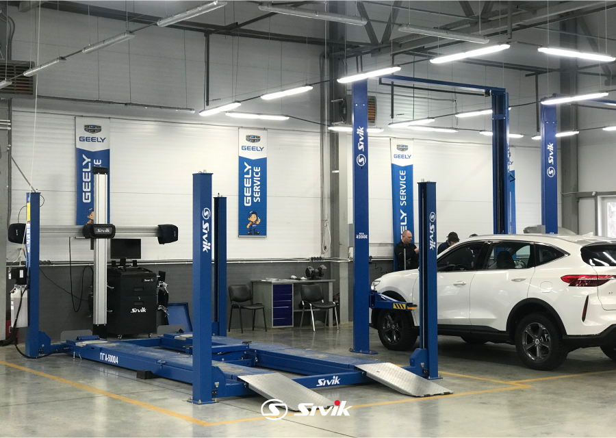 • Оснащение подъемника дает возможность производить регулировку развал/схождения, ремонт тормозной и рулевой систем, и другие работы