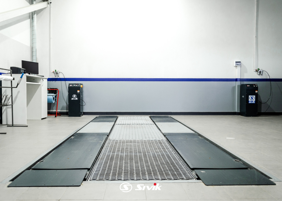• Предназначен для регулировки развал/схождения, ремонта тормозной и рулевой систем, и других работ. Оснащен сдвижными пластинами и нишами для поворотных кругов.