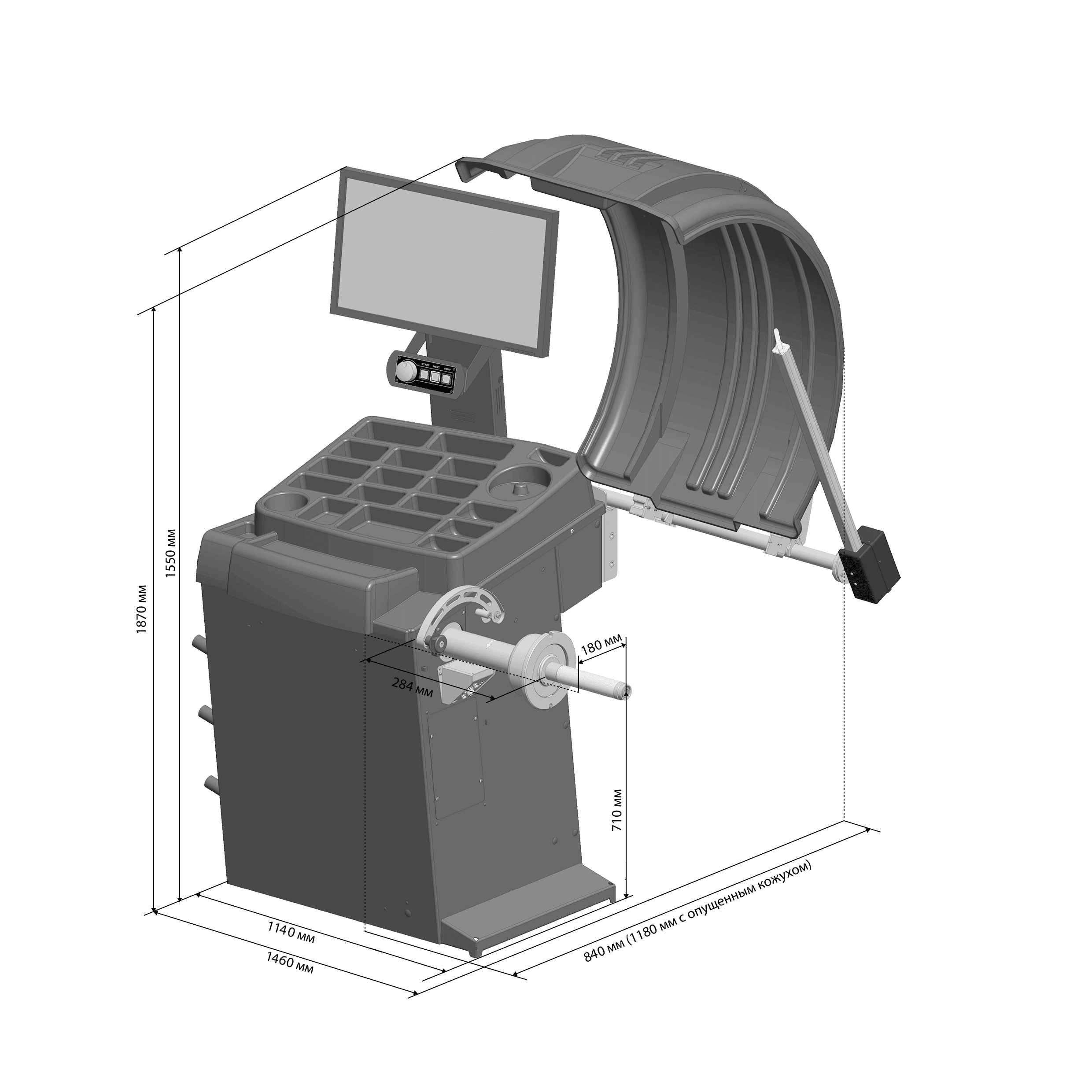• Вал станка смещен к оператору. Вылет вала максимальный, удобно обслуживать большие и широкие колеса